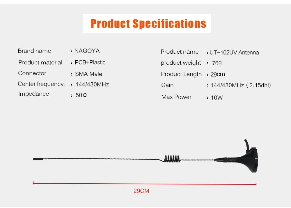 1 x Antenna UT-102UV(You can choose SMA-Female)