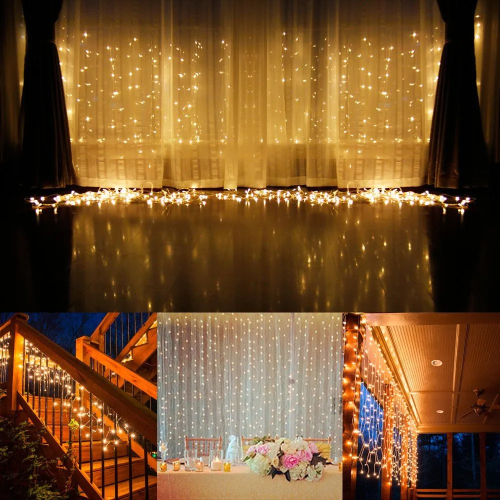 3m X 3m 304 Led Christmas Curtain String Fairy lights Curtain Icicle Lights For Party Outdoor Wall Home Window EU plug)