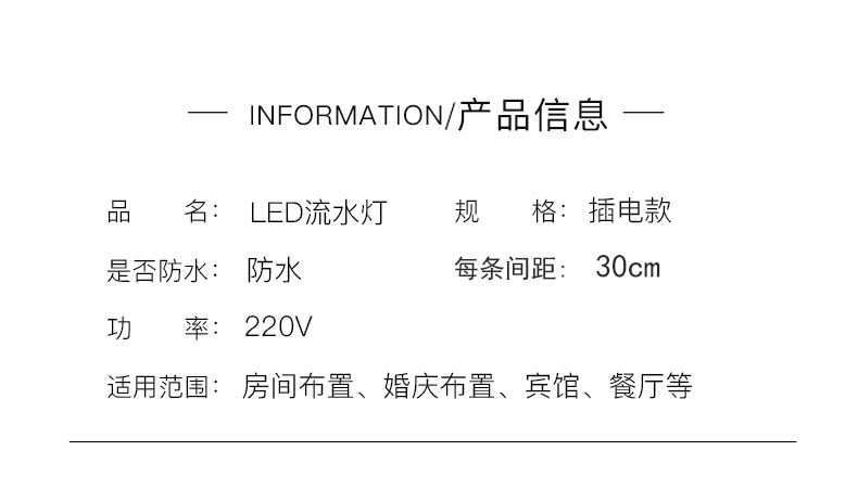 These are very stunning lights for indoor and outdoor use. The lights are on a straight line and chase to give a waterfall effect. There is a controller box to make the lights go faster and slower. They are very unique and will be sure to look amazing wherever you put them indoors or outdoors.LED lights are very bright, low voltage and energy efficient to save you pennies on those ever rising energy bills.If lights placed outside, transformer must stay indoors.Widely used for Party, Wedding, Restaurant, Hotel, Building, House, Shopping center, Pub, Concert, Show, Hall.