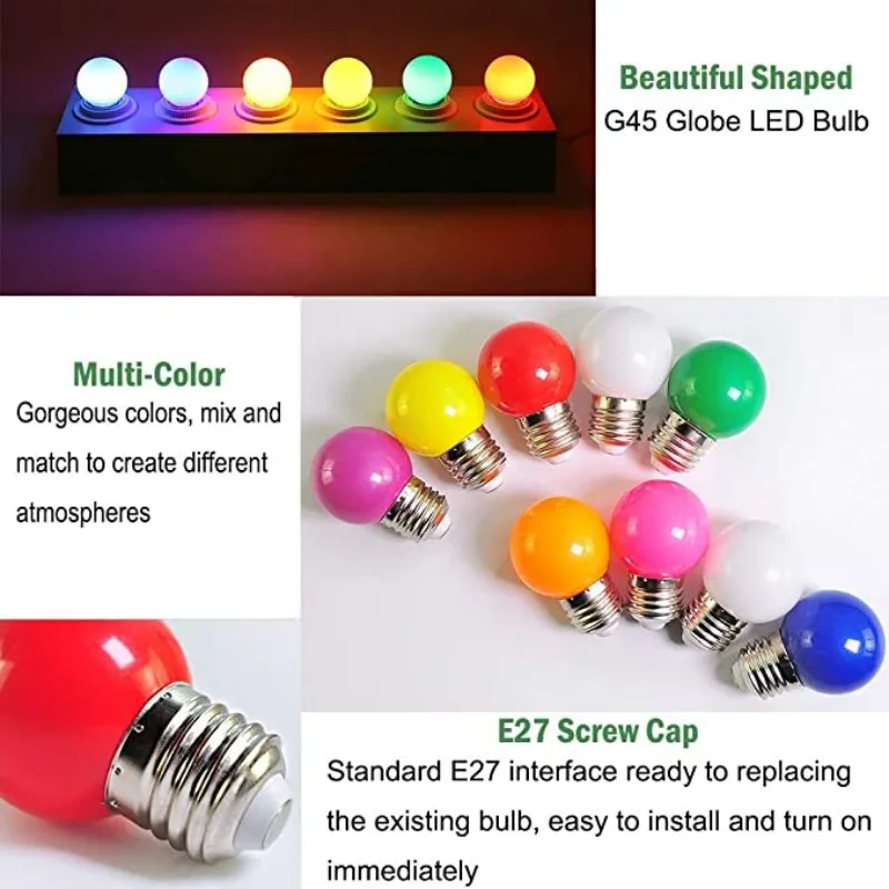 【Energy saving】5W colourful light, environmentally friendly, energy class A, PC cover to provide colourful lights and protect your eyes. More than 50,000 hours lifespan, durable and easy to use. You only need an E27 base and you can turn it on.