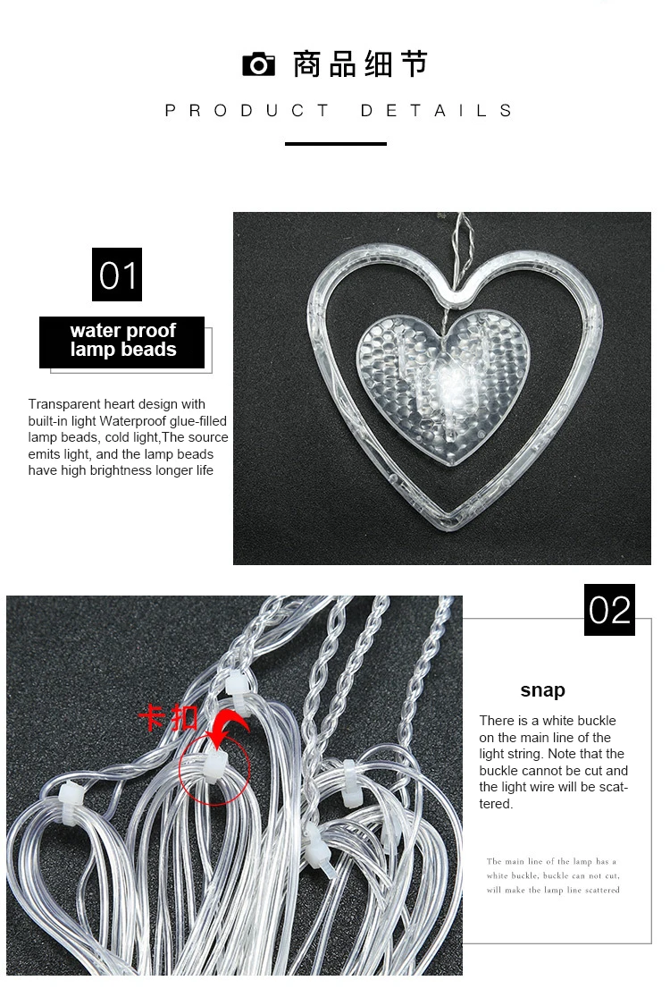 Transparent love design, built-in lamp waterproof glue-filled lamp beads, cold light source light, high brightness of lamp beads, longer life.