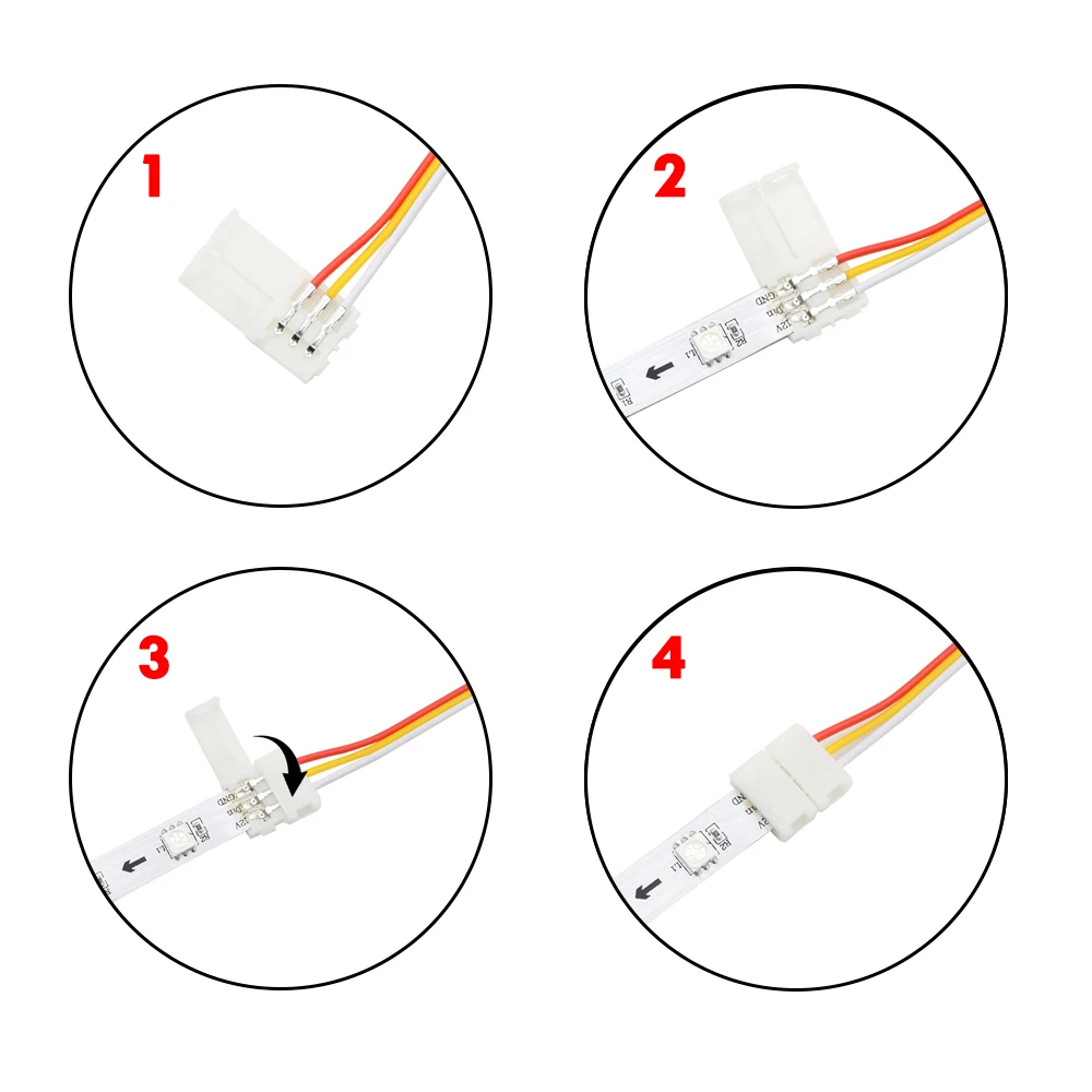3pin 8mm Cable With Single Head Solderless LED Light Strip Connector For WS2812B WS2811 12V LED Strip Light 15cm